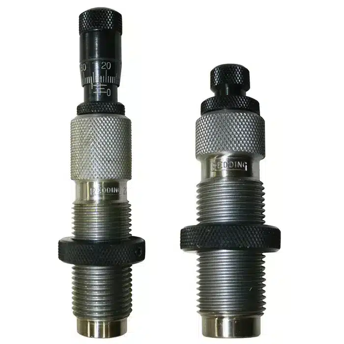 Following the introduction of Bullet Seating Micrometers for Reddings standard series of seating dies, their customers have been asking for complete die sets with this added precision. The upgrades includes combining a Carbide Size Button in the full length sizing die and the Bullet Seating Micrometer on the seating die.